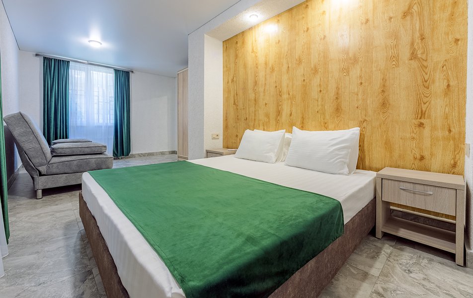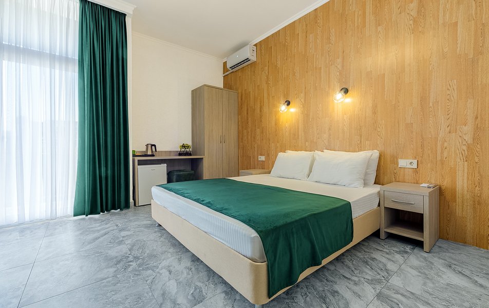 Стандартный номер с балконом, кондиционером, мини-холодильником, сейфом, чайником, кондиционером, телевизором. Гости размещаются на 1 двуспальной кровати. В ванной комнате душ, гигиенический душ, туалетные принадлежности, фен и тапочки.