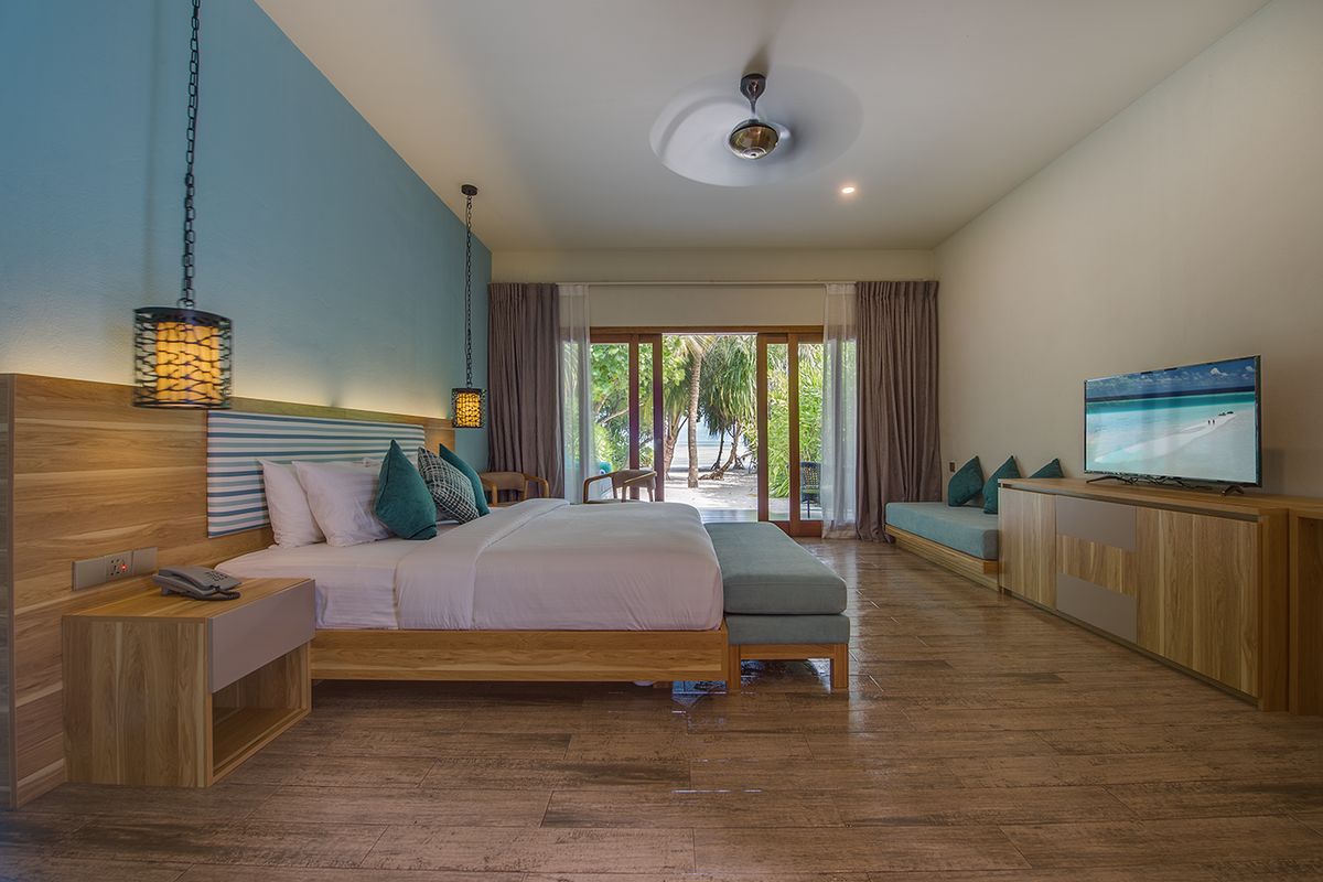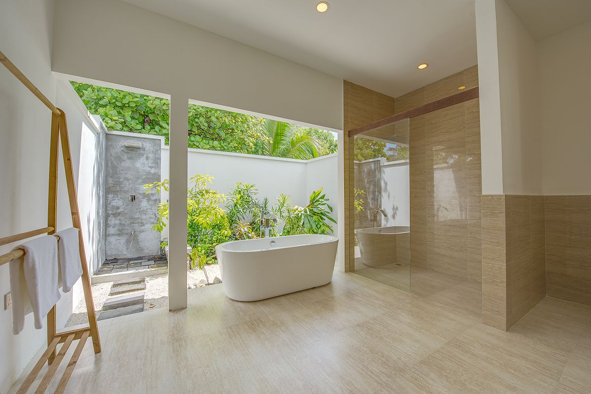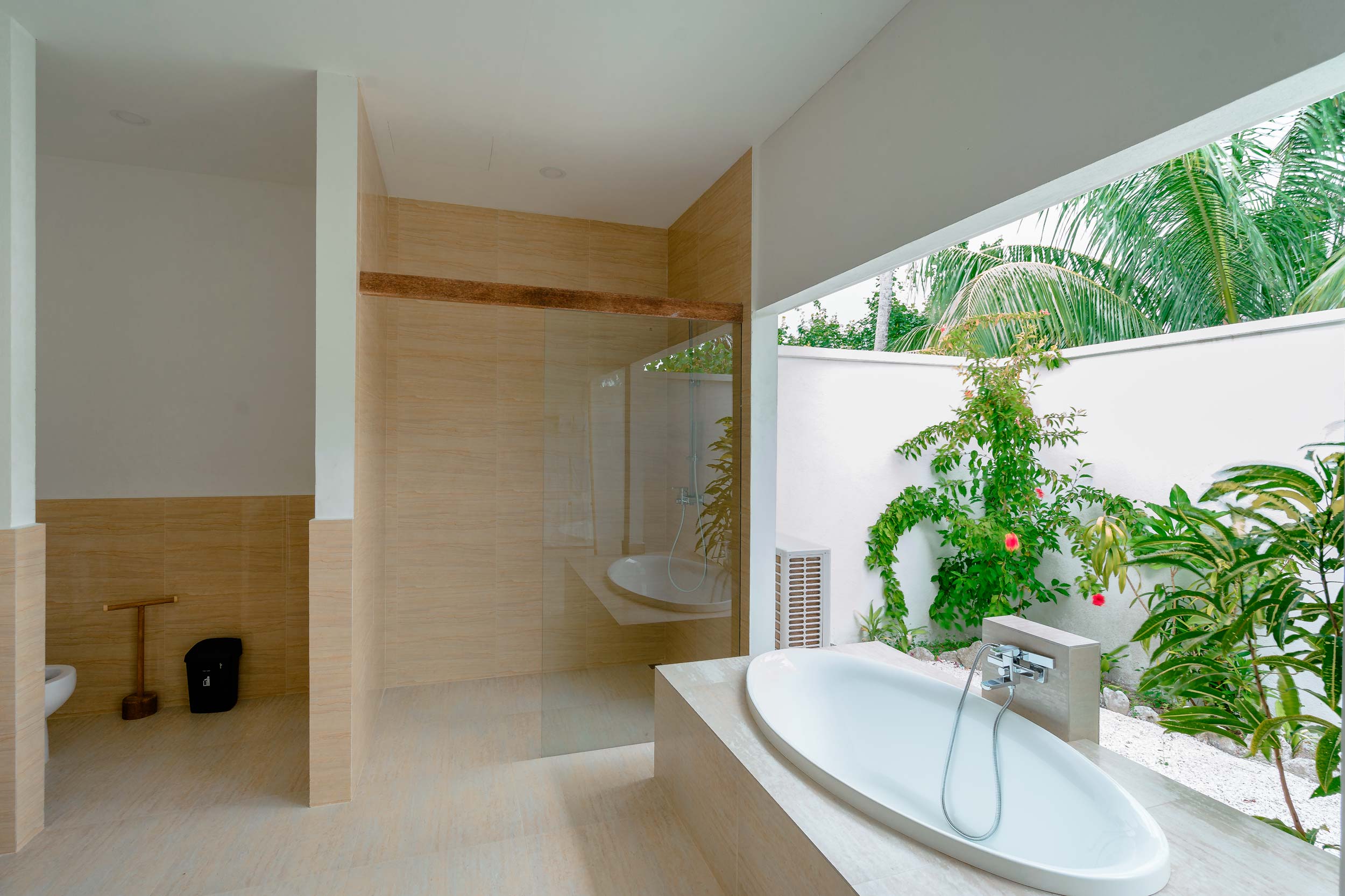 В комплектации виллы терраса с зоной отдыха и видом на океан, кондиционер, телевизор, обеденная зона, набор для приготовления чая/кофе, сейф, Wi-Fi, фен, халаты, набор гостиничной косметики. Спальня оснащена двуспальной кроватью, кушеткой, в ванной комнате душ, ванна, есть тропический душ на открытом воздухе.