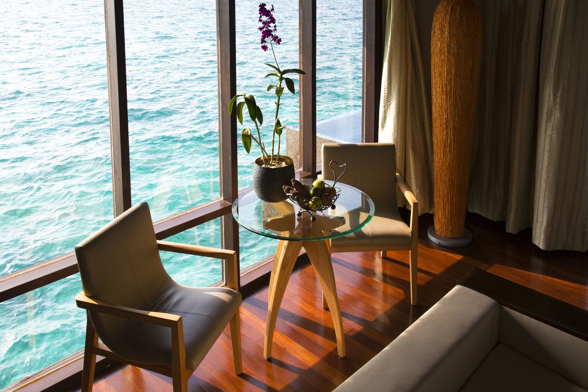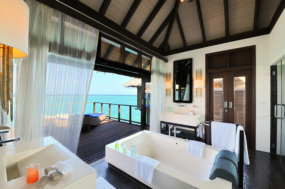 Водная вилла включает спальню, гостиную, ванную комнату с ванной и душем, душ на открытом воздухе, террасу с бассейном и зоной отдыха, доступ к лагуне и домашнему рифу. В числе удобств беспроводной Интернет, кондиционер, телевизор, мини-бар, сейф, набор для приготовления горячих напитков, косметические принадлежности, фен.