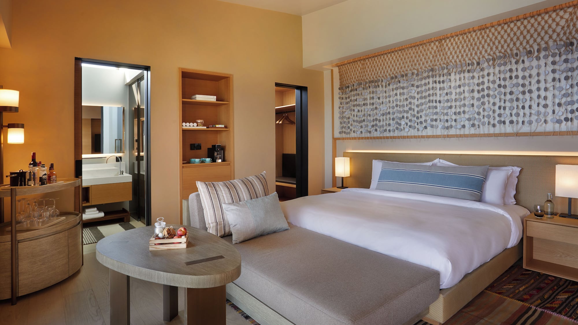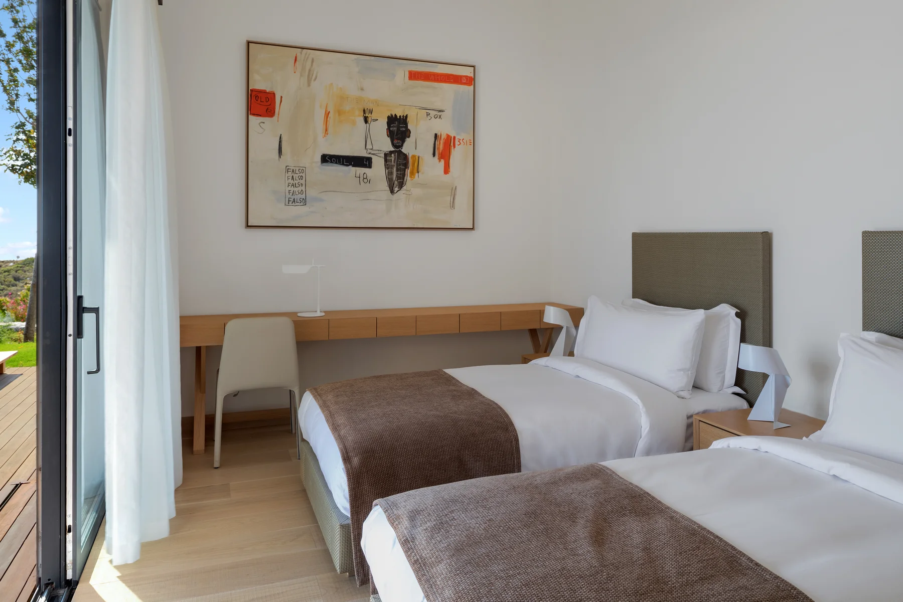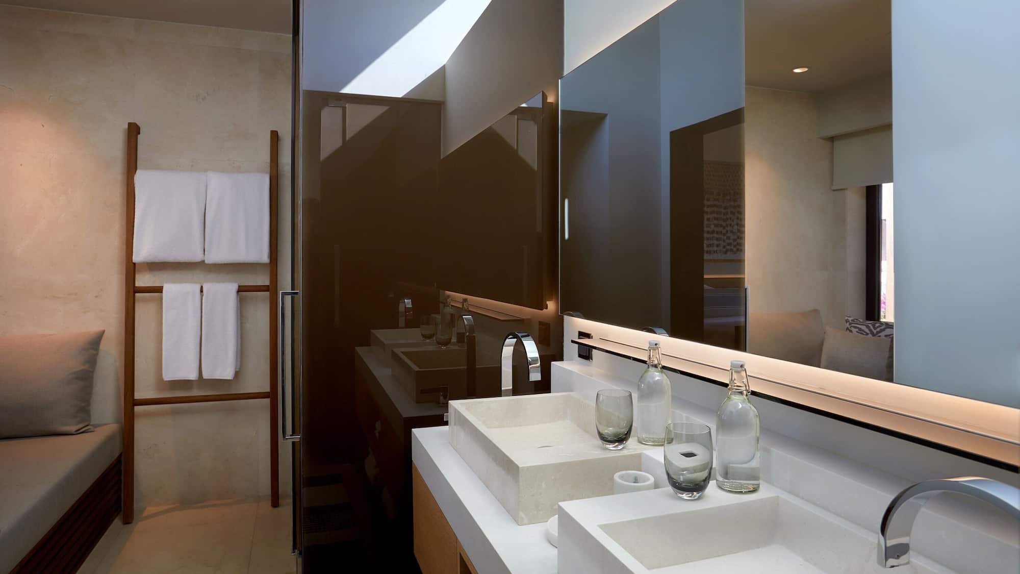 Просторный номер состоит из гостиной, 4 спален с ванной комнатой в каждой, кухни, террасы с частным бассейном. Оборудован телевизорами, кондиционером, мини-баром, сейфом, Wi-Fi, Bluetooth-динамиком Marshall, микроволновой печью, варочной поверхностью, холодильником, кофеваркой, феном. Зонт, пляжная сумка и шлепанцы предоставляются.